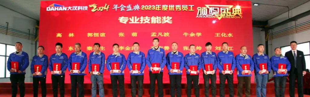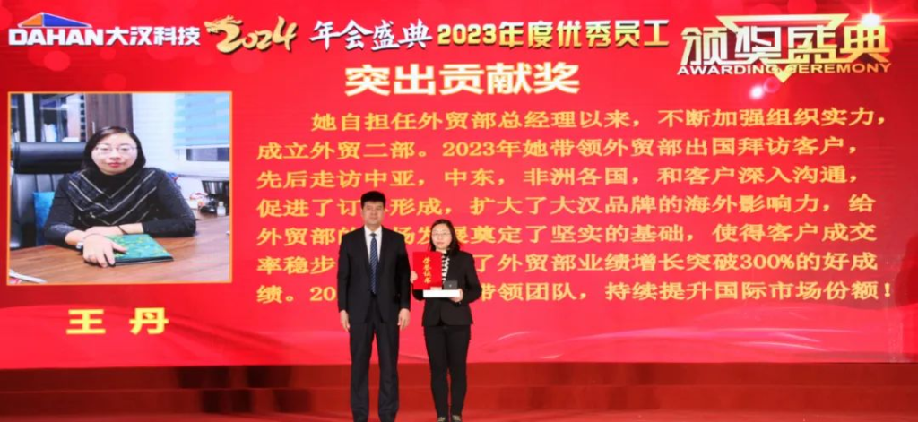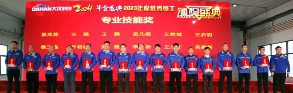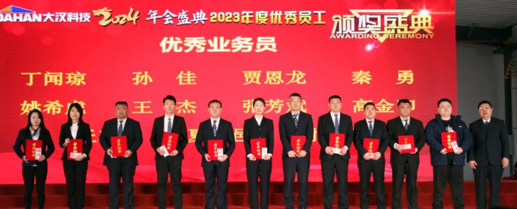 一程風雨,一程陽光;一路耕耘,一路收獲;是一載一載的風華,鑄就了大漢科技的參天氣魄,是一個又一個的榮耀,串聯(lián)起大漢科技的恢弘篇章。在隆重的頒獎環(huán)節(jié),分別對評選出的公司突出貢獻獎、十大人物、銷售標兵、優(yōu)秀業(yè)務員以及專業(yè)技能獲得者進行了獎勵。