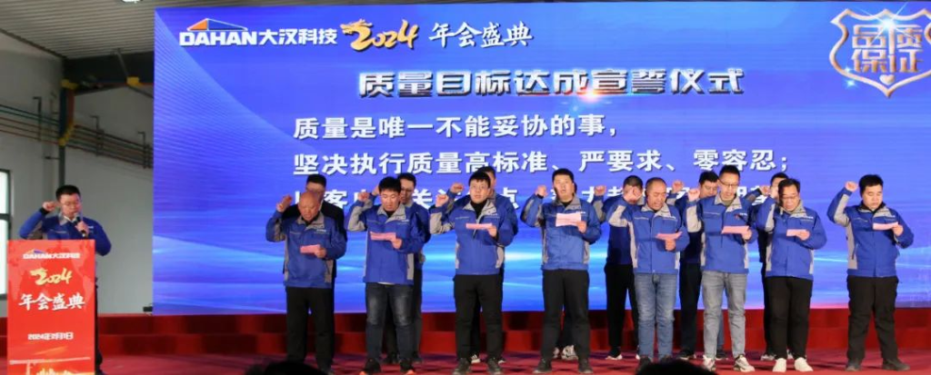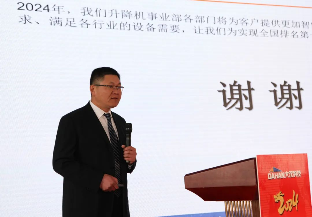 當清晨的第一縷陽光點綴起錦繡山河的壯美和云霧潤蒸的泉韻,大漢科技2024年會盛典在希望和美好的期許中如約而至。2024年2月1日,大漢科技2024年會盛典隆重舉行,公司董事長康與宙、常務副總裁李俊池以及600多名員工參加了年會盛典。在當前智能化飛速發(fā)展的技術迭新時代,圍繞建機行業(yè)數(shù)字化、工業(yè)化、智能化相融合的新趨勢,大漢科技作為行業(yè)頭部企業(yè)致力于推動公司智能制造、數(shù)字轉型,用匠心和專業(yè)打造的智能產(chǎn)品聯(lián)動智慧未來,構建產(chǎn)業(yè)發(fā)展新格局,持續(xù)在奮進新征程中攻堅克難,銳意進取,持續(xù)保持中國建機行業(yè)前三強。憶往昔,崢嶸歲月。在千村寥落、狼煙四起的戰(zhàn)爭年代,需要大好華夏兒女精忠報國;看今朝,信心滿懷。在山河遠闊、國泰民安的和平時代,更需要新的一代人精忠報國。一曲由升降機事業(yè)部選送的大合唱《精忠報國》,瞬間點燃起在座的每一位大漢員工的豪邁激情,激勵我們每個人都要愛祖國、愛大漢、愛崗位。在市場形勢發(fā)生巨大變化,競爭異常激烈的2023年,銷售精英一路披荊斬棘、奮力拼搏,把銷售團隊業(yè)績潛力充分發(fā)揮出來。公司常務副總裁李俊池李總對2023年的銷售工作進行了全面回顧,并分享了2024年的銷售目標、計劃和措施,勉勵大漢全體銷售精英無懼挑戰(zhàn)、奮勇向前,創(chuàng)造新的業(yè)績!在全球經(jīng)濟一體化和國家"一帶一路"總規(guī)劃大背景下,大漢科技用智能創(chuàng)造價值,用智慧聯(lián)動未來,強力推出高性價比的DH系列塔式起重機和智能施工升降機與世界接軌,與世界融合,成長為一家具有全球化戰(zhàn)略布局的行業(yè)領軍企業(yè),而外貿(mào)出口業(yè)務在2023年更是實現(xiàn)國際市場銷售新突破。外貿(mào)部負責人王丹王總分享了公司外貿(mào)出口的總結以及新銷售目標、措施。通過分享,我們了解到大漢科技已與全球50多個國家和地區(qū)的經(jīng)銷商建立合作共贏機制,為這些國家和地區(qū)的建設項目提供智能化、數(shù)字化、綠色化以及高性價比的建筑機械產(chǎn)品及系統(tǒng)解決方案,祝愿外貿(mào)團隊持續(xù)開創(chuàng)融合共贏新局面,持續(xù)開創(chuàng)國際市場新格局!