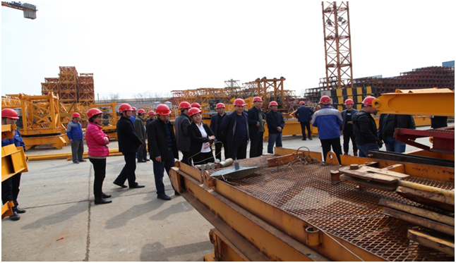 技術(shù)人員陪同質(zhì)安中心主要領(lǐng)導(dǎo)和各單位負(fù)責(zé)人參觀(guān)了大漢股份的塔機(jī)維修車(chē)間。