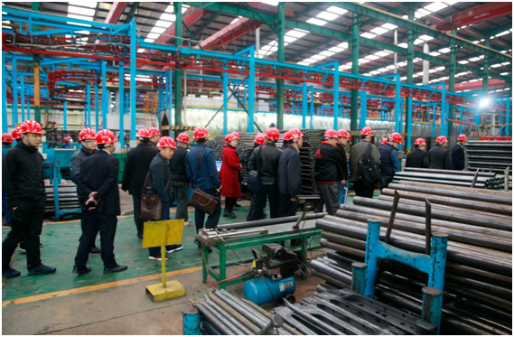 全體與會(huì)嘉賓參觀山東大漢股份車間