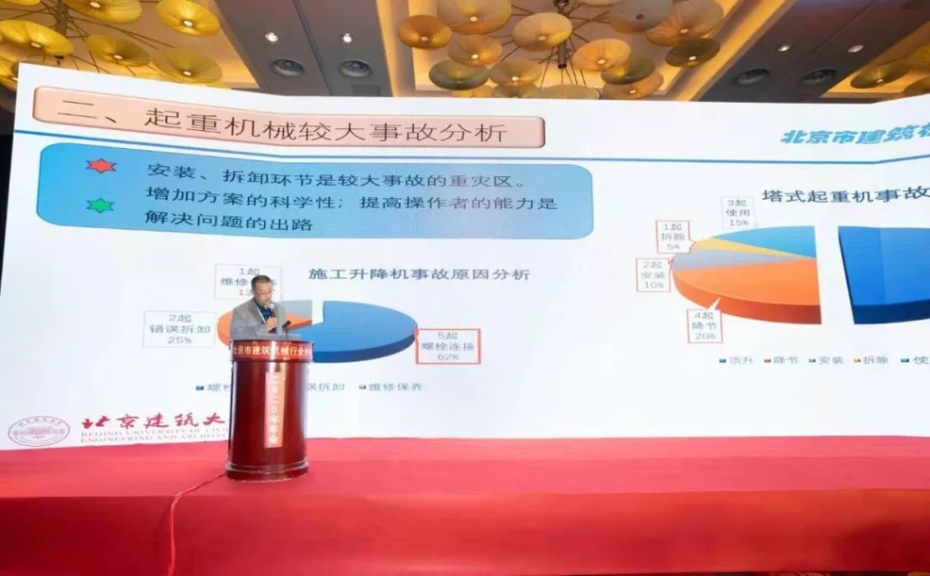 論壇環(huán)節(jié),《建筑機(jī)械》雜志社翟會昆社長主持論壇,圍繞當(dāng)前“兩建機(jī)”行業(yè)存在的設(shè)備使用年限和安全管理問題舉辦北京市第一屆塔式起重機(jī)安全(北京)高峰論壇。北京建筑大學(xué)、建筑施工專業(yè)委員會王凱暉專家發(fā)表了《行業(yè)合力、構(gòu)筑安全》主題發(fā)言,王凱暉副會長從起重機(jī)械和建筑安全的關(guān)系、起重機(jī)械較大事故分析、北京地區(qū)起重機(jī)械行業(yè)近六年更新?lián)Q代和購置特點(diǎn)、租賃行業(yè)發(fā)展特點(diǎn)等方面從宏觀和微觀角度細(xì)致分析。