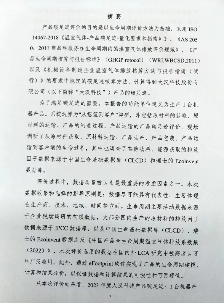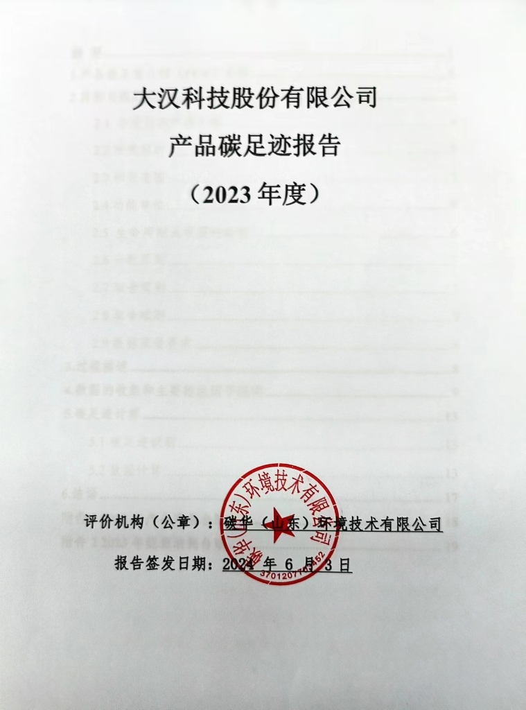 大漢科技股份有限公司產(chǎn)品碳足跡報(bào)告(2023年度)