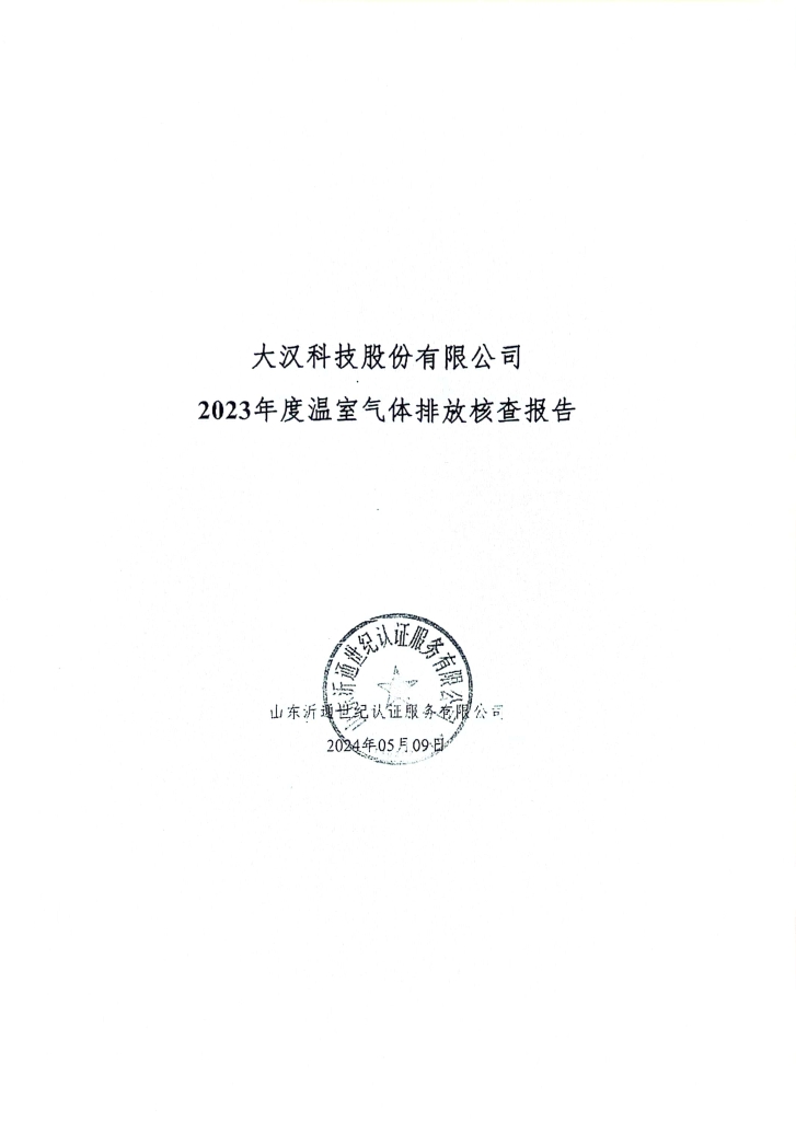 大漢科技股份有限公司2023年度溫室氣體排放核查報(bào)告