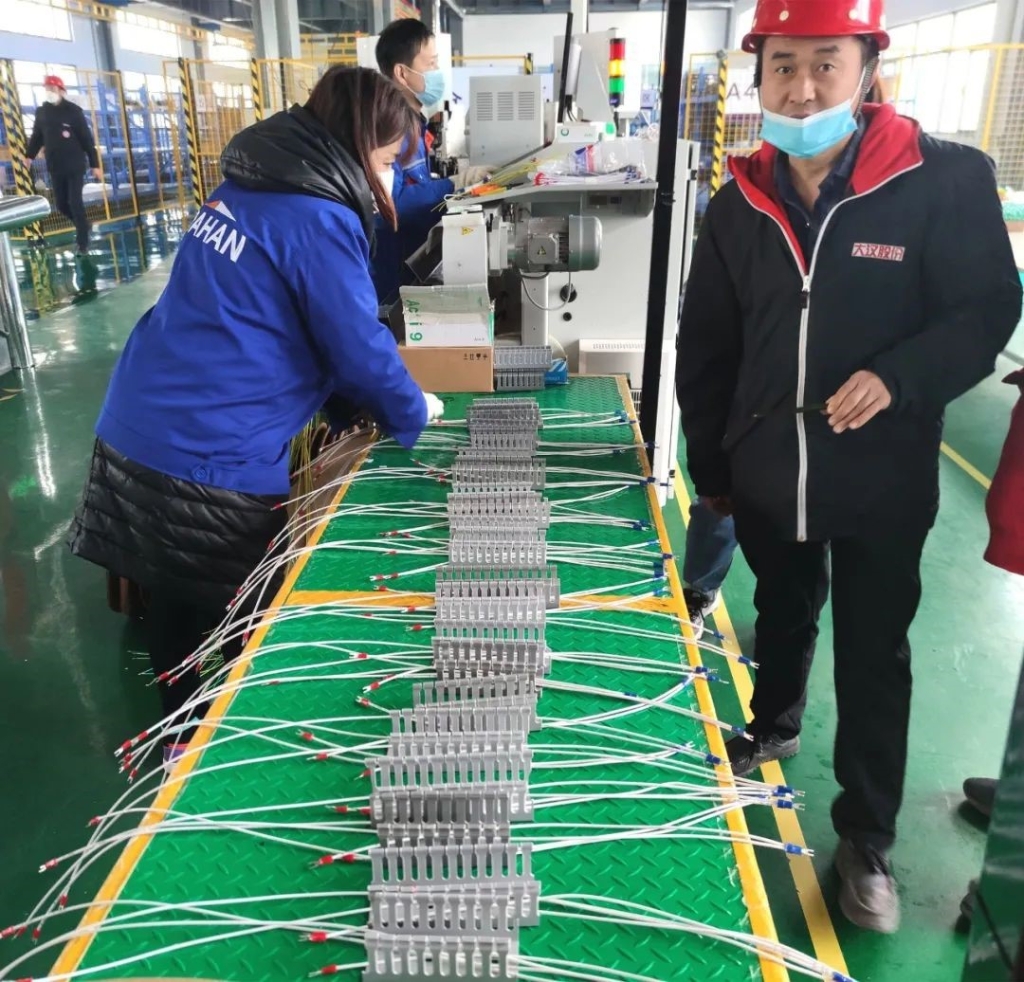 培訓(xùn)期間,參觀了電氣車間,電氣高級工程師講解了大漢科技自主研發(fā)的升降機(jī)一體機(jī)流水線及檢驗(yàn)調(diào)試系統(tǒng)、線束線纜全自動(dòng)加工機(jī)、塔機(jī)電控加工流水線、塔機(jī)電控整機(jī)調(diào)試。在員工體驗(yàn)培訓(xùn)區(qū),電氣工程師通過現(xiàn)場實(shí)物,一一解答客戶人員工作中的疑難問題,提高客戶人員工作中的實(shí)戰(zhàn)水平。
